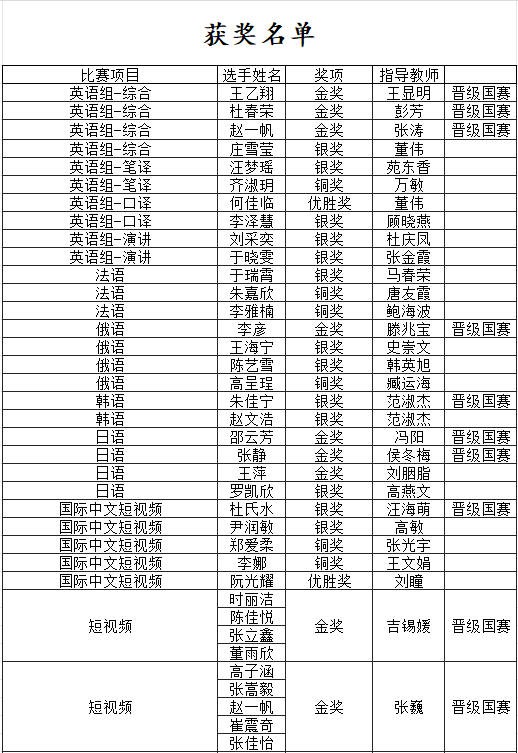 本届大赛设置英语综合能力、笔译、口译、演讲、短视频以及多语种、来华留学生中文短视频七大赛项。自9月初大赛启动以来,kaiyun.com积极筹划,协调外国语学院、翻译学院、国际教育学院等单位,高质量圆满完成了校赛的组织工作和省赛选手的推荐工作。