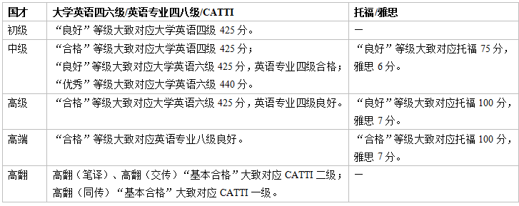 国才考试与国内外英语考试的对标