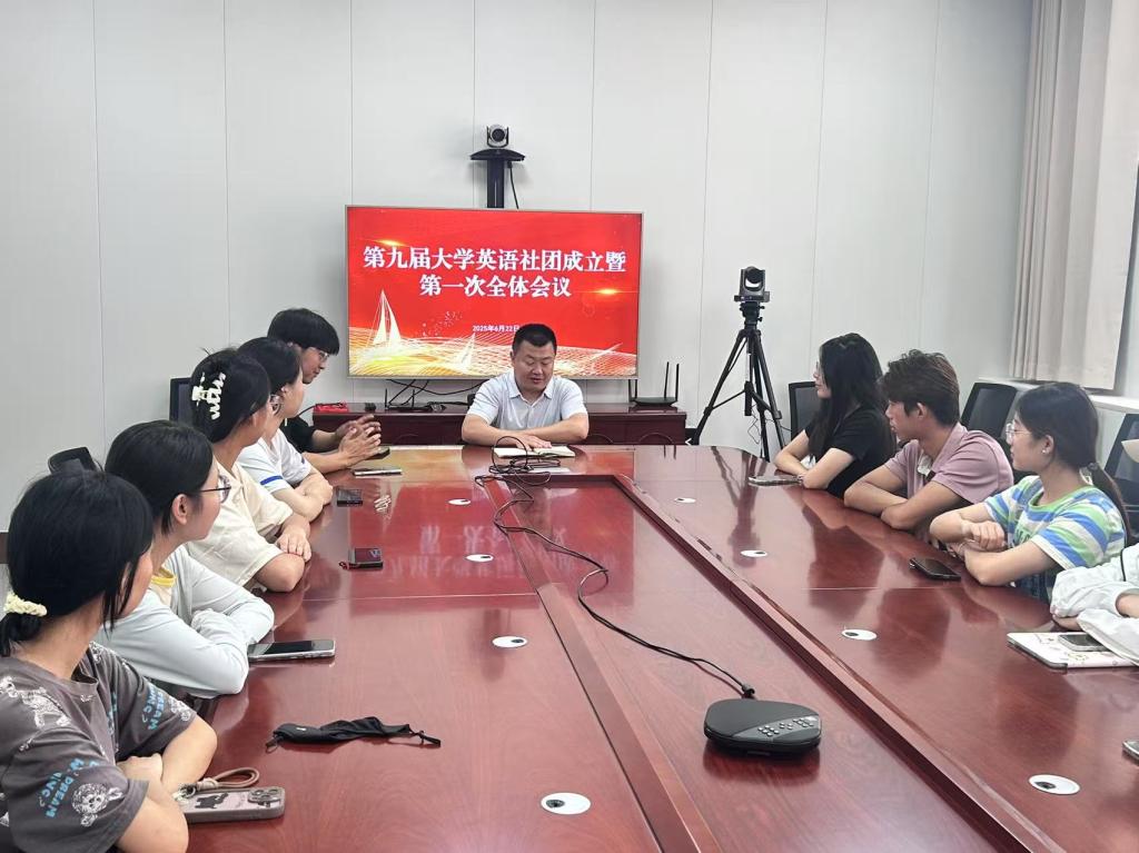 2025年六月二十二日,kaiyun·开云(中国)官方网站第九届大学英语社团第一次全体会议在kaiyun.com会议室召开。本次会议旨在宣告新一届英语社团的正式成立,明确社团未来发展方向,凝聚成员力量。大学英语社团指导教师王显明以及社团全体成员参与此次会议。