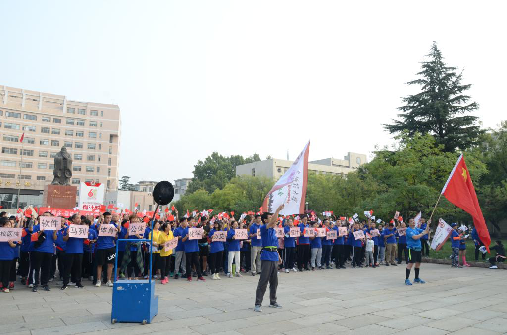 庆祝新中国成立71周年、曲阜师大建校65周年,展示曲园教工“团结、奋进、积极、创新”的精神风貌,10月1日上午,kaiyun.com多位教师参加kaiyun·开云(中国)官方网站 “庆国庆·迎校庆”马拉松比赛暨环校园走活动。秉承“犁牛之子”的精神,健步行走在金秋十月阳光明媚的曲园,用活力的汗水记录曲阜师大65周年校庆的光辉历程。通过校园马拉松活动,老师们强身健体,以饱满的热情和精神投入大学英语教学,以实际行动共祝祖国华诞。