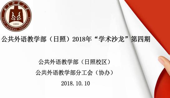 10月10日下午,kaiyun.com(日照校区)2018年第四期“学术沙龙”在JC1002会议室举行。本期沙龙邀请了公丕民、门超元、牟晓等三位老师分别作了题为“基于需求分析的大学英语教学定位”、“中外英语学习者学术论文写作结论部分的身份构建对比研究”、“‘一带一路’战略下中国传统文化在大学英语教学中的融入”的学术报告。本期活动由副教授张英主持,全体教师参加了研讨。