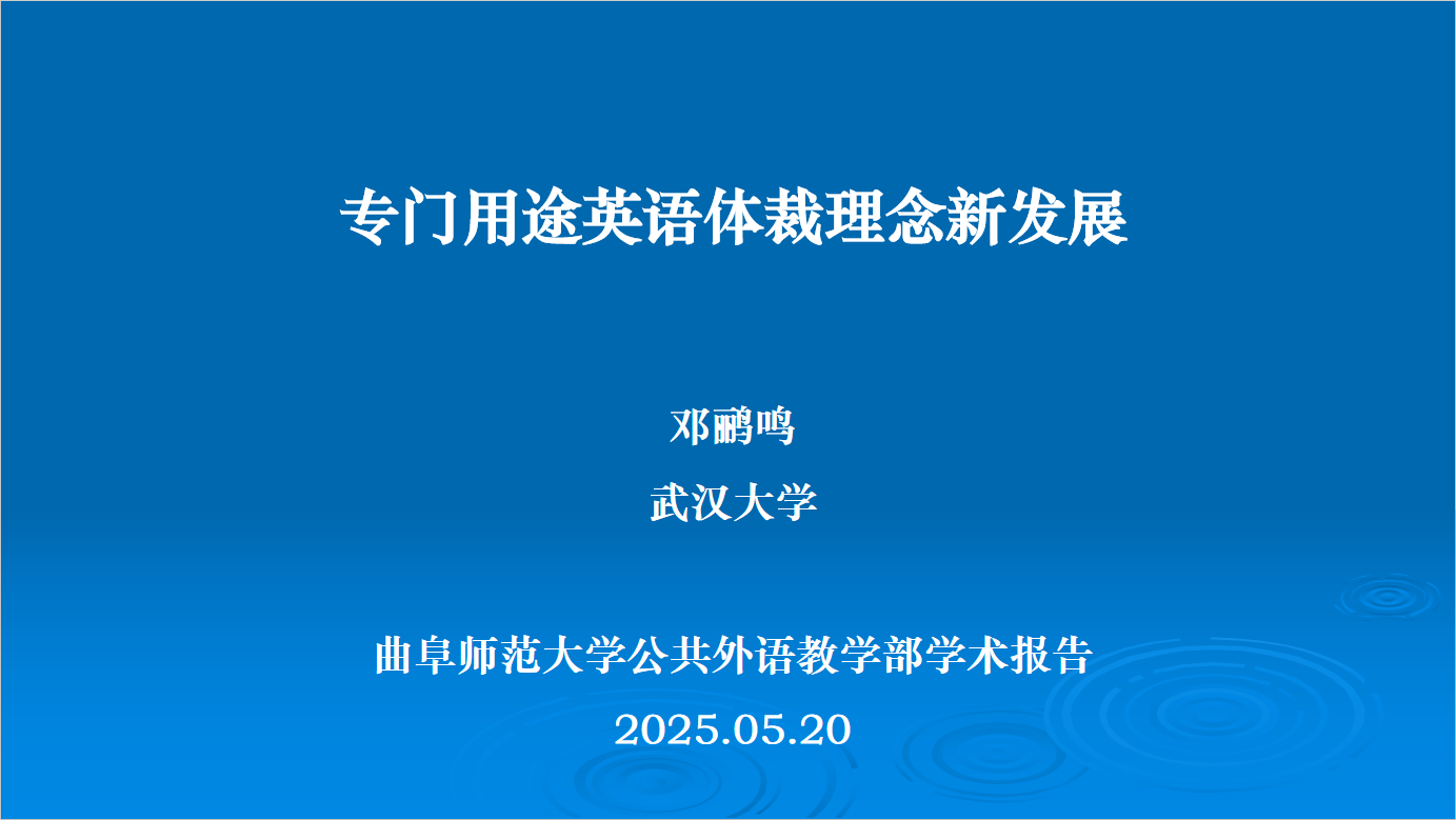 2025年5月20日下午,kaiyun·开云(中国)官方网站kaiyun.com举办70周年校庆系列学术活动暨博雅讲坛第八场。武汉大学邓鹂鸣教授应邀作题为“专门用途英语体裁理念新发展”的学术报告,kaiyun.com全体教师参加活动。