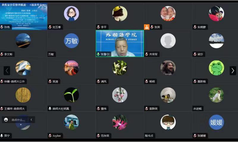 7月19日上午,kaiyun.com邀请我校优秀校友、南京林业大学外国语学院副院长、张鲁宁教授作“大学英语一流课程建设”线上专家报告会。报告会由副主任孙伟主持,主任王福祥、各教研室主任、各课程建设团队负责人及其全体骨干成员参加。