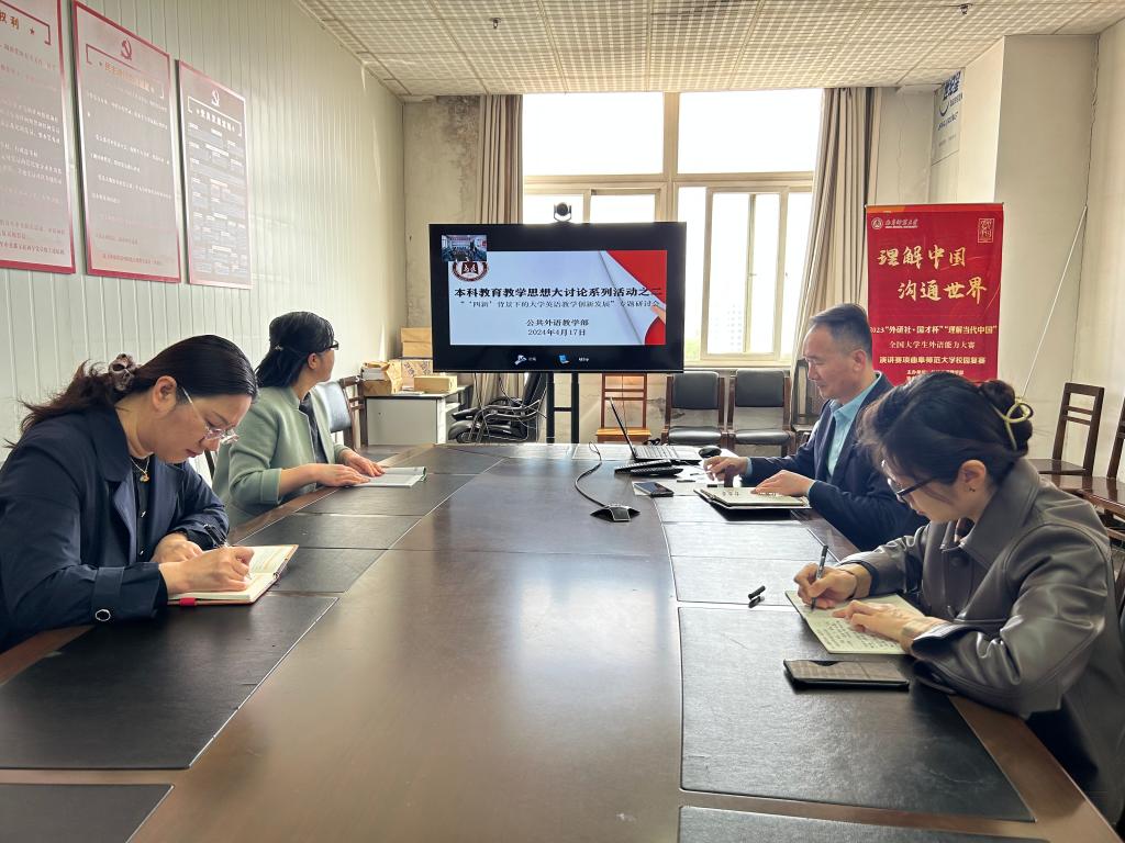 4月17日,kaiyun.com召开本科教育教学思想大讨论系列活动之二——“‘四新’背景下的大学英语教学创新发展”专题研讨会。研讨会由kaiyun.com主任王福祥主持,教学部领导班子全体成员和两校区教研室主任等业务骨干参加了本次研讨。