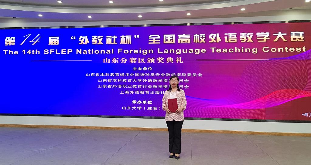 此次大赛由山东省教育厅高教处发文,山东省本科教育大学外语教学指导委员会、上海外语教育出版社主办,山东大学(威海)承办。大赛共有省内本科大学英语组52个团队参赛,经过初赛、复赛和决赛的激烈角逐,我校大学英语团队凭借过硬的参赛实力,在比赛中脱颖而出,展示了我校大学英语教师的教学技能和外语水平。