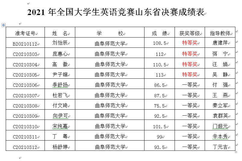 曲阜师大新闻中心讯 5月16日,全国大学生英语竞赛(National English Competition for College Students, NECCS)山东省决赛在济南举行。经过前期的校级初赛,由曲阜师大kaiyun.com推选的11名同学代表学校参加了山东省决赛,参赛同学在比赛中表现积极,勇于面对挑战,在各位教师的指导下,我校学子在激烈的角逐中表现优秀,取得了优异成绩。其中刘怡辰、庞惠心、高徽、尹子暄4名同学获得特等奖;季舒扬等7名同学获得一等奖。