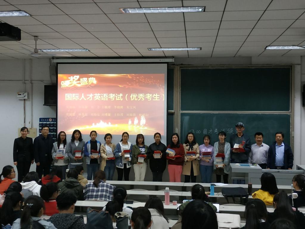 大会最后,与会嘉宾向国才考试获得优秀等次的吴沛钰等同学颁发国才证书、奖学金、奖品、奖状及校园国才大使荣誉证书。济宁高新外商服务有限责任公司项目总监常弘代表公司向优秀学子赠送了丰厚礼品。同时,对近400名国才成绩良好、合格等次的同学颁发了国际人才英语考试证书。颁奖盛典在热烈的气氛中落下帷幕。