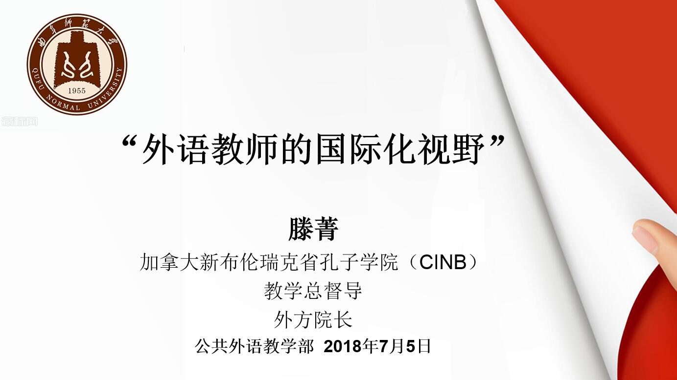 7月5日下午,加拿大新布伦瑞克省孔子学院(CINB)教学总督导、外方院长滕菁女士应邀莅临kaiyun.com(日照校区)进行交流访问,并作题为“外语教师的国际化视野”的专题报告。kaiyun.com(日照校区)全体教师参加了报告会,报告会由kaiyun.com副主任孙伟主持。