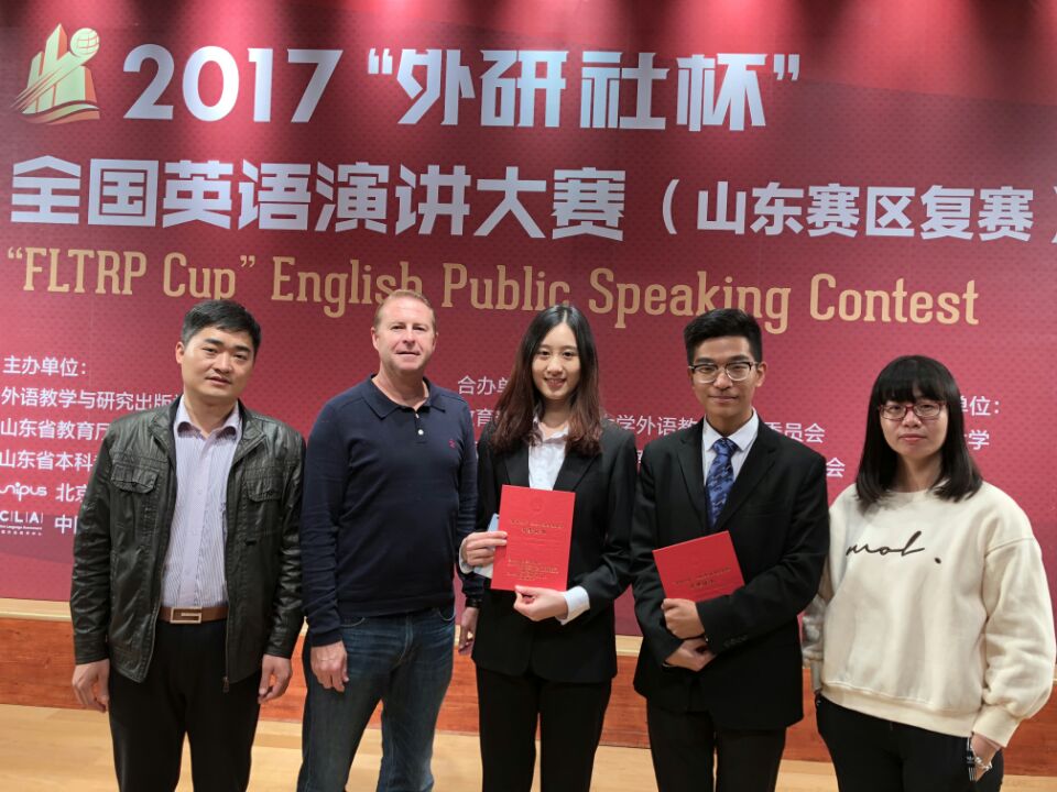 我校kaiyun.com教师孙海珊指导的2015级文学院学生张佳育、外国语学院教师邢加新和外籍教师Mark Fisher指导的2016级外国语学院学生葛宇飞分别参加了非专业组、专业组的比赛。比赛中两位同学自信从容、稳定发挥,展示了较高的演讲素质和演讲水平。经过激烈角逐,两位同学各自斩获二等奖一项。
