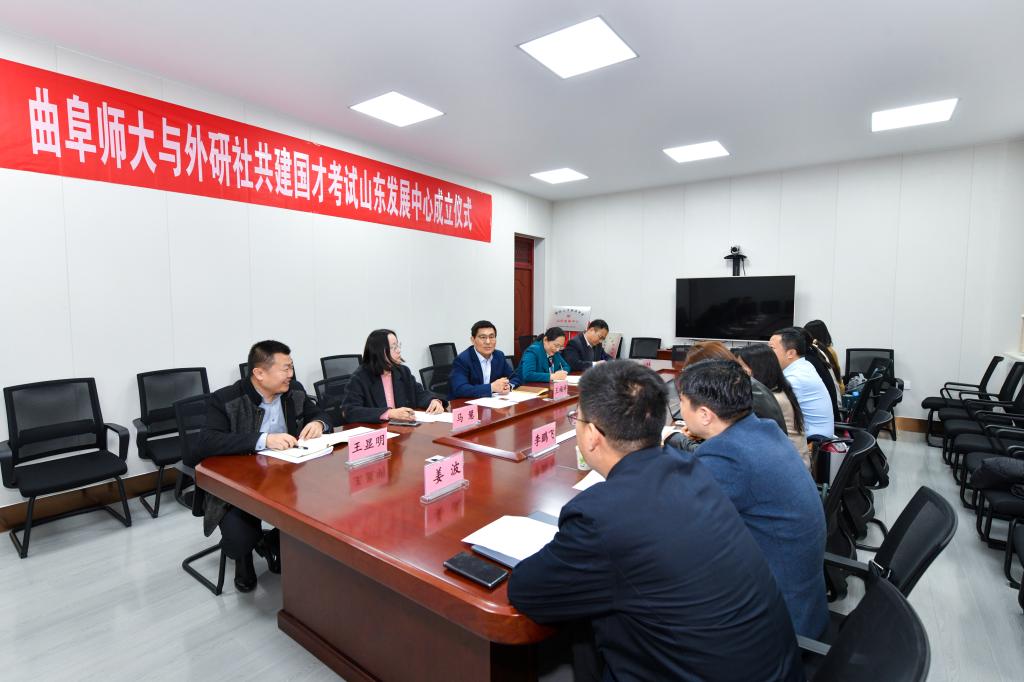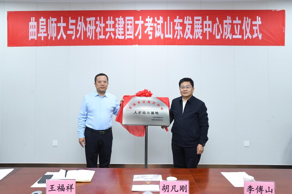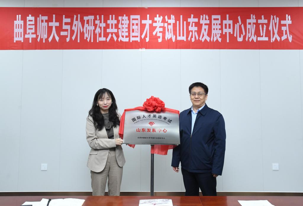 仪式上,胡凡刚副校长与冯涛总经理共同为“国际人才英语考试山东发展中心”揭牌,曲师大教务处处长李傅山与外研社高等营销中心华东大区总经理李洪旺为“kaiyun·开云(中国)官方网站国际人才培养基地”揭牌。两大平台的成立,将为山东省高校国际化人才培养提供重要支撑。